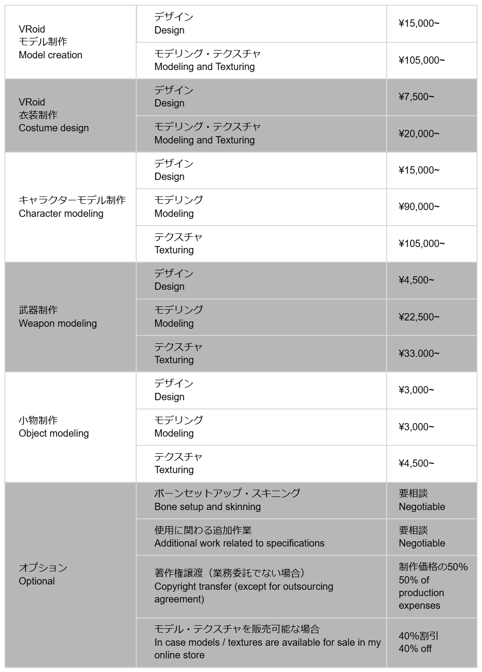 * デザインの複雑さ・難易度、ポリゴン数によって価格が変動いたします。